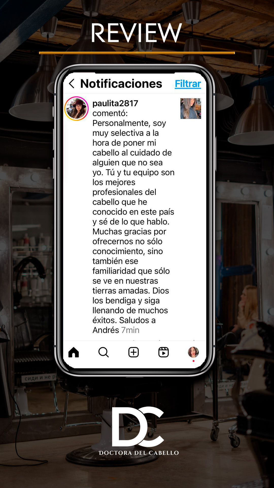 Estoy comprometida con la salud capilar y creo firmemente que un cabello sano es reflejo de un cuidado integral y consciente. Mi objetivo es que cada persona que visite mi salón se sienta renovada y con confianza en su belleza natural.